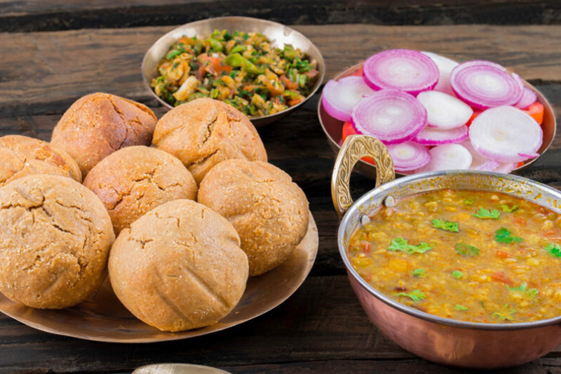 Dal Baati Churma at Chokhi Dhani or local restaurants