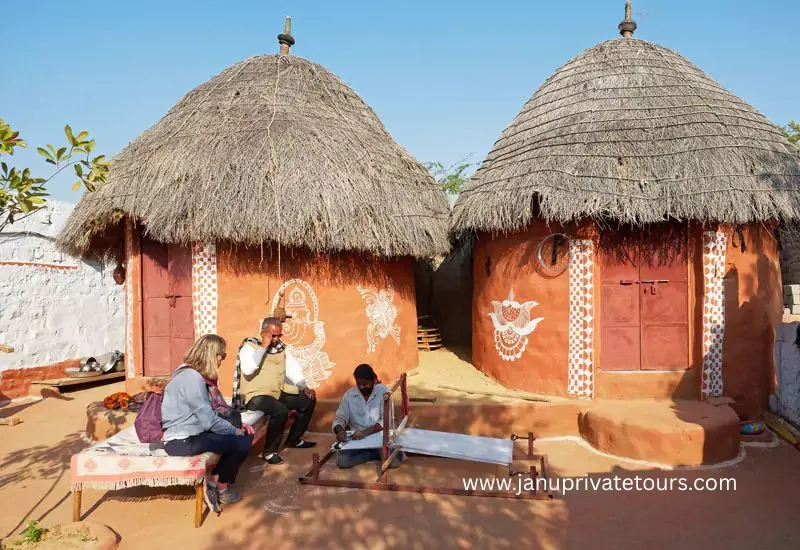 Bishnoi Village Safari Tour from Jodhpur and discover the heart of rural Rajasthan. This cultural jeep safari takes you beyond the Blue City into traditional Bishnoi settlements, where age-old crafts, wildlife encounters, and eco-friendly living come alive. From watching potters and weavers at work to spotting blackbucks and peacocks in their natural habitat, every moment offers a glimpse into the authentic lifestyle of Rajasthan’s Bishnoi community. Whether you choose a half-day safari or a full-day Bishnoi tour,