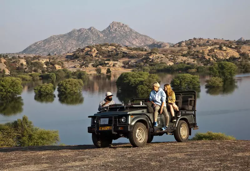 Arrive at Jawai Dam, the largest water reservoir in western Rajasthan, and immerse yourself in its natural beauty. Spot crocodiles and migratory birds in their natural habitat, and enjoy panoramic views of the reservoir and the surrounding rugged landscapes.