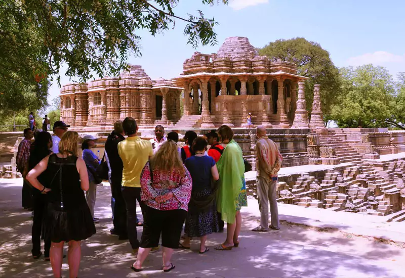 Our first stop is the awe-inspiring Sun Temple of Modhera, dedicated to the Sun God, Surya. Built in the early 11th century by King Bhima I of the Solanki dynasty, the temple is an architectural marvel with its intricately carved pillars, the beautifully designed Sabha Mandap (assembly hall), and the sacred Surya Kund (stepwell). Here, you’ll learn about the temple’s alignment with the equinox and its significance in Hindu mythology, making it a must-visit heritage site in Gujarat.