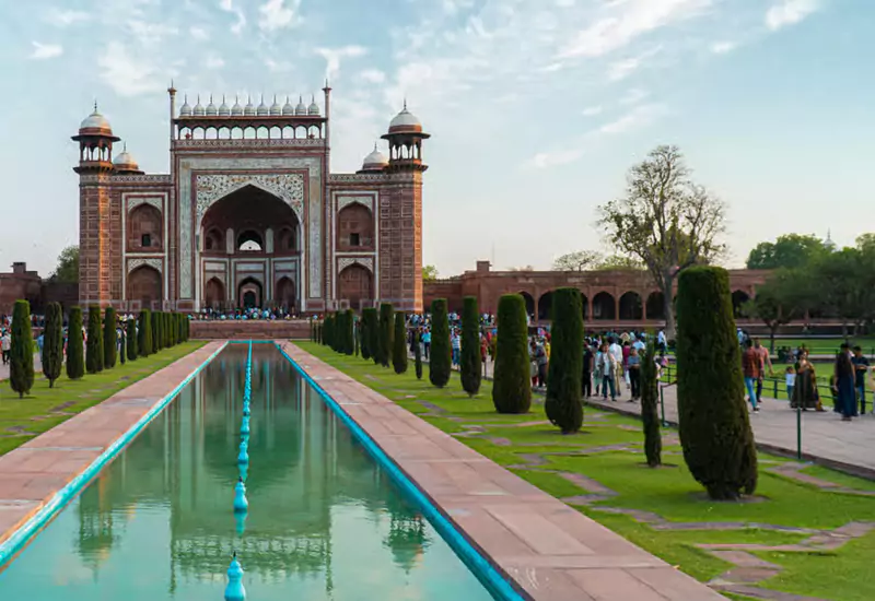 The tour begins with a pick-up from your hotel, railway station, or airport in Agra. You will meet your driver and local tour guide, and then proceed to the Taj Mahal, one of the Seven Wonders of the World and a UNESCO World Heritage Site. Here, you will have ample time to admire its stunning architecture while your guide explains the fascinating history and helps you make the most of your visit.