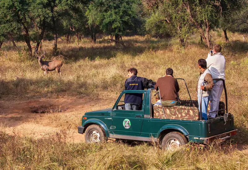 Then, step off the beaten path into the wild heart of Sariska Tiger Reserve. Trade monuments for jungle trails as you search for elusive tigers, leopards, and spotted deer in their natural habitat — a peaceful contrast to the bustling cities.