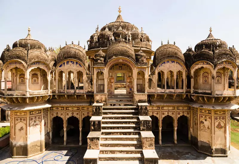 Your journey begins in Delhi and covers Nawalgarh (Shekhawati), Bikaner, Jodhpur, Udaipur, Chittorgarh, Pushkar, Jaipur, Agra, Gwalior, Orchha, Khajuraho, and Varanasi — blending Rajasthan’s regal charm with the spiritual essence of central and northern India.