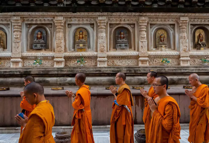 Your journey begins in the holy city of Varanasi, where you will be greeted by your driver and set out on a scenic drive to Bodhgaya, the spiritual heart of Buddhism. On arrival, check in at your hotel and enjoy a wholesome lunch before starting your exploration of the sacred Mahabodhi Temple Complex, a UNESCO World Heritage Site where Lord Buddha attained enlightenment under the Bodhi Tree. Stroll around the temple grounds, witness monks chanting, and take a moment for quiet reflection beneath the sacred tree. Later, explore the international monasteries built by countries like Japan, Thailand, and Tibet, each reflecting unique architecture and spiritual traditions. Conclude the day with a visit to the Sujata Stupa, linked to the story of Sujata who offered kheer (rice pudding) to Gautama Buddha before his enlightenment, symbolizing compassion and faith.