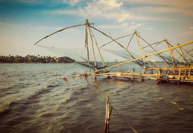 The Fort Kochi and Mattancherry Heritage Walking Tour begins at the Chinese Fishing Nets, where you can observe traditional fishing methods.
