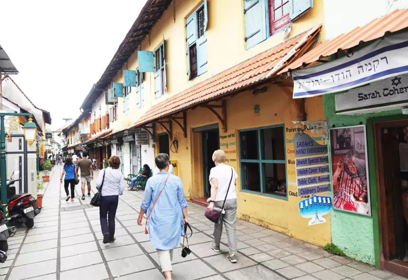 Next, wander through Jew Town, a charming historic street filled with antique shops, spice bazaars, and a unique glimpse into Kochi’s Jewish heritage.