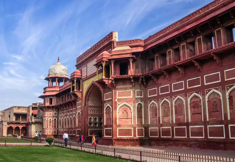 After breakfast, check out from your hotel and drive to Agra via the Yamuna Expressway. The journey takes around 3 hours. On arrival, check in at your hotel. In the afternoon, visit the grand Agra Fort, a 16th-century Mughal fortress. Later, head to Mehtab Bagh (Moonlight Garden) for a breathtaking sunset view of the Taj Mahal across the Yamuna River. In the evening, explore Agra’s local handicraft markets, known for marble inlay work, leather products, and souvenirs. Overnight stay in Agra.
