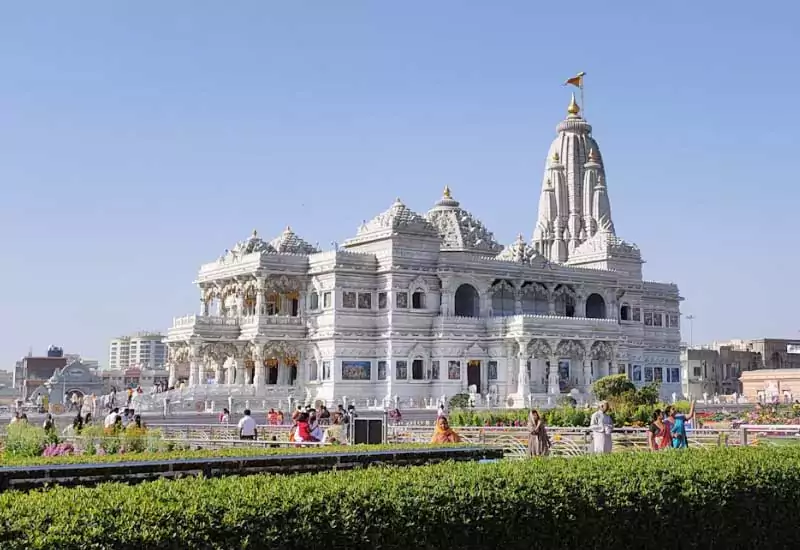 Take a short 15 km drive from Mathura to Vrindavan, where you can visit the famous Mata Vaishno Devi Temple, ISKCON Temple, Bankey Bihari Ji Temple, and Nidhivan. Before ending your trip, make sure to catch the breathtaking Light and Sound Show at Prem Mandir.