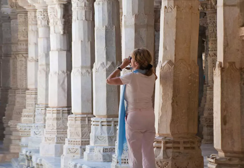 Continue to the breathtaking Ranakpur Jain Temple, a 15th-century marble masterpiece dedicated to Tirthankara Adinatha. Marvel at its 1,440 intricately carved pillars, each uniquely designed, along with beautifully engraved ceilings, domes, and latticework. Wander through the peaceful prayer halls and immerse yourself in the temple’s serene spiritual atmosphere.